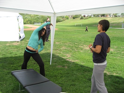 Above: Dr. Chan providing a stretch to a visitor to the tent.